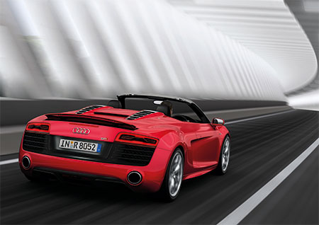 Fotos: Audi AGDer R8 war von seinen Schöpfern von Anfang an als sportliche Speerspitze im Modellprogramm gedacht. Seit einer Produktaufwertung 2012 präsentiert sich der Hochleistungssportler mit vielen Verbesserungen, darunter eine neu entwickelte Siebengang S tronic. Das Exterieurdesign zeigt sich weiter geschärft, am markantesten sind die neu strukturierten LED-Scheinwerfer, die jetzt durchgängig Serie sind, der sechseckige Singleframe-Grill und die großen Abgas-Endrohrblenden. Auch in der Ultra-Leichtbau-Technologie beweist Audi sein ganzes Können. Das überarbeitete R8 Cabrio namens Spyder bringt die gleichen Neuerungen wie das Coupé mit. Die Karosserie des offenen Liebhaber-stücks wiegt gerade einmal 216 Kilogramm, das Stoffverdeck aus Aluminium und Magnesium ist leicht und kompakt. Es lässt sich in 19 Sekunden elektrohydraulisch öffnen und schließen, auch während der Fahrt bis 50 km/h. In geschlossenem Zustand läuft es in zwei langen, schlanken Finnen aus. Das Softtop, dessen Gestänge von einem Innenhimmel abgedeckt wird, ist leise und ohne Abstriche highspeedtauglich. Eine beheizbare Glasscheibe in der Schottwand lässt sich per Schalter ein- und ausfahren und übernimmt damit die Funktion des Windschotts. Die Fahrleistungen und Verbrauchswerte des R8 Spyder unterscheiden sich nur minimal von der Coupé-Version. Die Cabrio-Motorenpalette mit einem 4.2 FSI quattro mit 316 kW (430 PS) sowie einem 5.2 FSI quattro mit 386 kW (525 PS) sorgt für Geschwindigkeiten jenseits der 300 km/h. Gibt es dafür eigentlich schon die passenden Küstenstraßen…