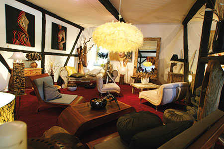 Neben außergewöhnlichem Mobiliar und seltenen Accessoires gehören auch exotische Plastiken, Steinfiguren und großformatige Öl- und Acrylbilder verschiedenster Künstler sowie Kunstrichtungen zum Programm. Und so herrscht eine ganz eigene Stimmung in der 170 qm großen Scheune: Ledersessel bieten Plätze zum Verweilen, Buddhafiguren und große Gemälde sorgen für Seelenruhe, Holzlampen spenden dem Besucher sanftes Licht. Sehr gut geeignet für eine kleine Reise - auf der Suche nach dem Besonderen aus fremden Ländern und dem Charme ferner Kulturen.