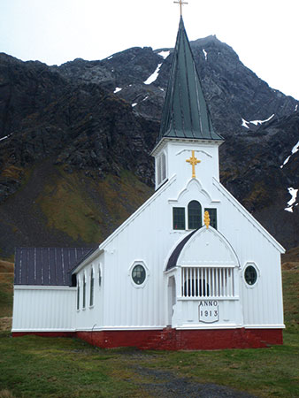 Fotos: Rico HellenbachDas hier ist menschenleeres Land. Überall liegen Tierknochen herum. Wir durchqueren Pinguine und Robbenfelder. Die alte Walfängerstadt Grytviken taucht auf, dort finden wir das Grab von Ernest Henry Shackleton, dem britischen Polarforscher. Ringsherum rosten Metall und Ölfasser. Nur die Kirche namens „Whaler´s Church“ wurde restauriert und instand gehalten. Ein Whisky auf Shackleton. Eine Südpol-Expedition kostete ihn und seine Crew beinahe das Leben. Jetzt holt die Natur sich alles wieder, die Tiere kommen zurück. Wir können nicht länger bleiben. Müssen wieder an Bord.